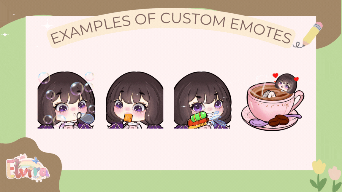 1 emote- $20Complex designs/ characters & commercial license will require extra charge